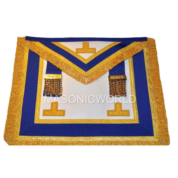 PROVINCIAL DRESS APRON) HANDMADE LAMBSKIN LEATHER APRON DARK BLUE MOIR RIBBON GOLD METAL TASSELS AND FITMENTS EMBROIDERED LEVELS ADJUSTABLE BELT POCKET IN BACK WELL PADDED & QUALITY BACKING MATERIAL...