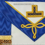 CRAFT- PROVINCIAL UNDRESS APRON AND COLLAR PACKAGE LAMBSKIN PROVINCIAL UNDRESS APRON) HANDMADE LAMBSKIN LEATHER APRON DARK BLUE RIBBON GOLD METAL TASSELS AND FITMENTS EMBROIDERED LEVELS ADJUSTABLE BELT POCKET IN...