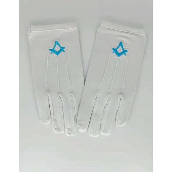 Quality Regalia 100% Cotton White Craft Masonic Sq & Compass Lodge Gloves. Superb Quality White100% Cotton Gloves White with detailed Square & Compass Embroidered on each Wrist in Blue...